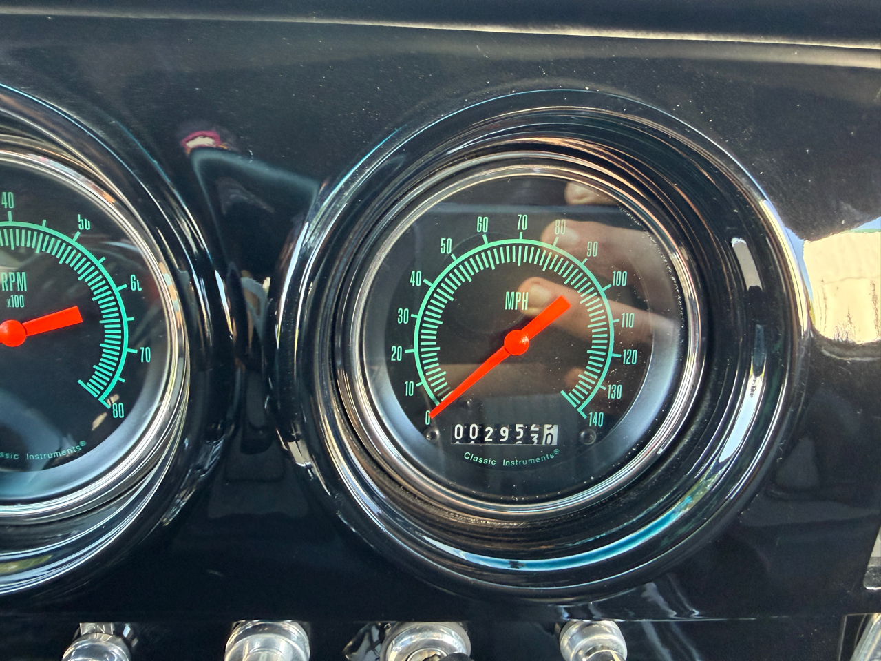 Powered by a GM Performance Parts 330hp 350ci HO Deluxe V8 crate engine with a Holley Terminator EFI fuel injection system, Custom PRC aluminum radiator, Patriot ceramic coated headers, and custom exhaust with Flowmaster mufflers.