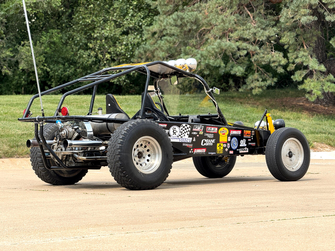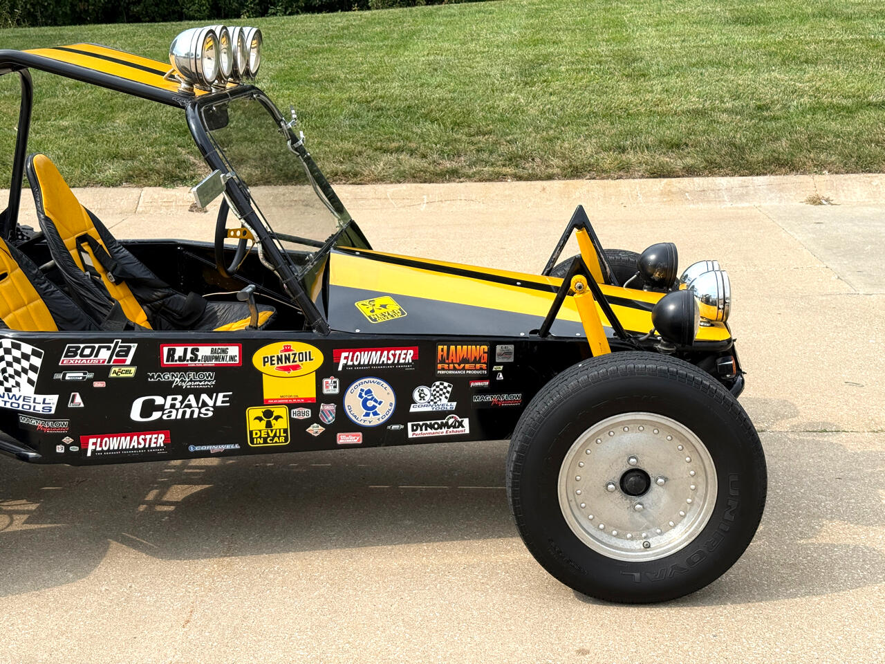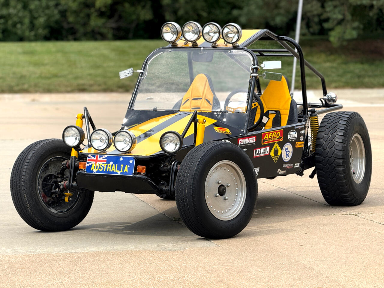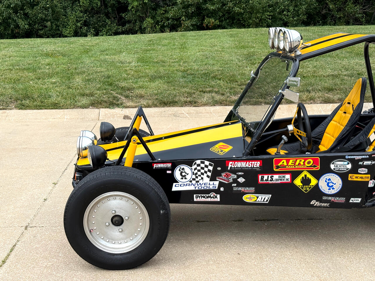 This fun, street legal buggy is powered by a newer air cooled 1600cc VW engine with only 200 miles on it. Chrome exhaust and accessories, upgraded alternator and fans.