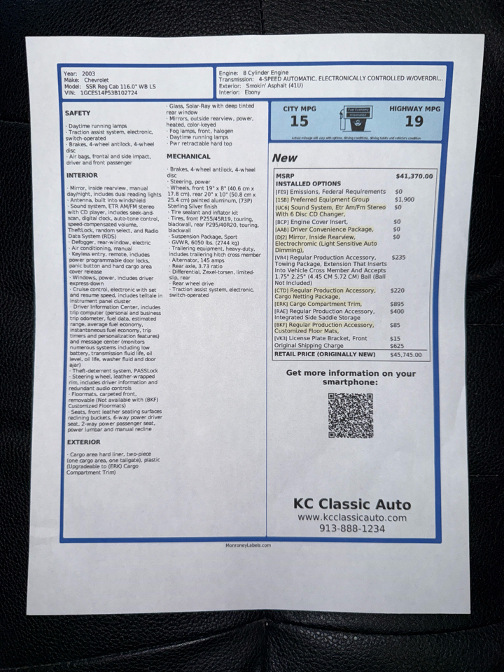 KC Classic Auto is proud to present this Awesome 2003 Chevy SSR, A.K.A. Ashleigh!