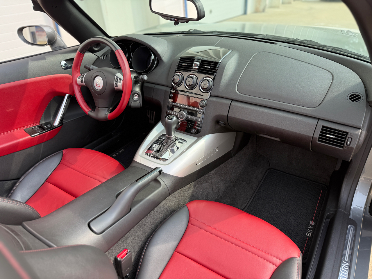 Finished in gorgeous Silver Graphite with Black and Red leather interior. This Sky is in EXCELLENT condition inside and out.