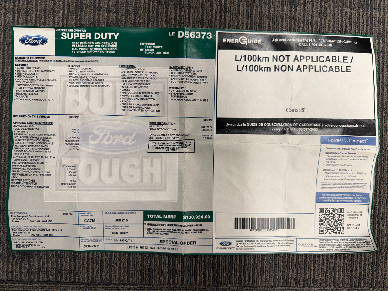 Powered by its original 6.7L Powerstroke V8 diesel, mated to a 10-speed automatic transmission. 4x4, Platinum AND Tremor Off-Road package!