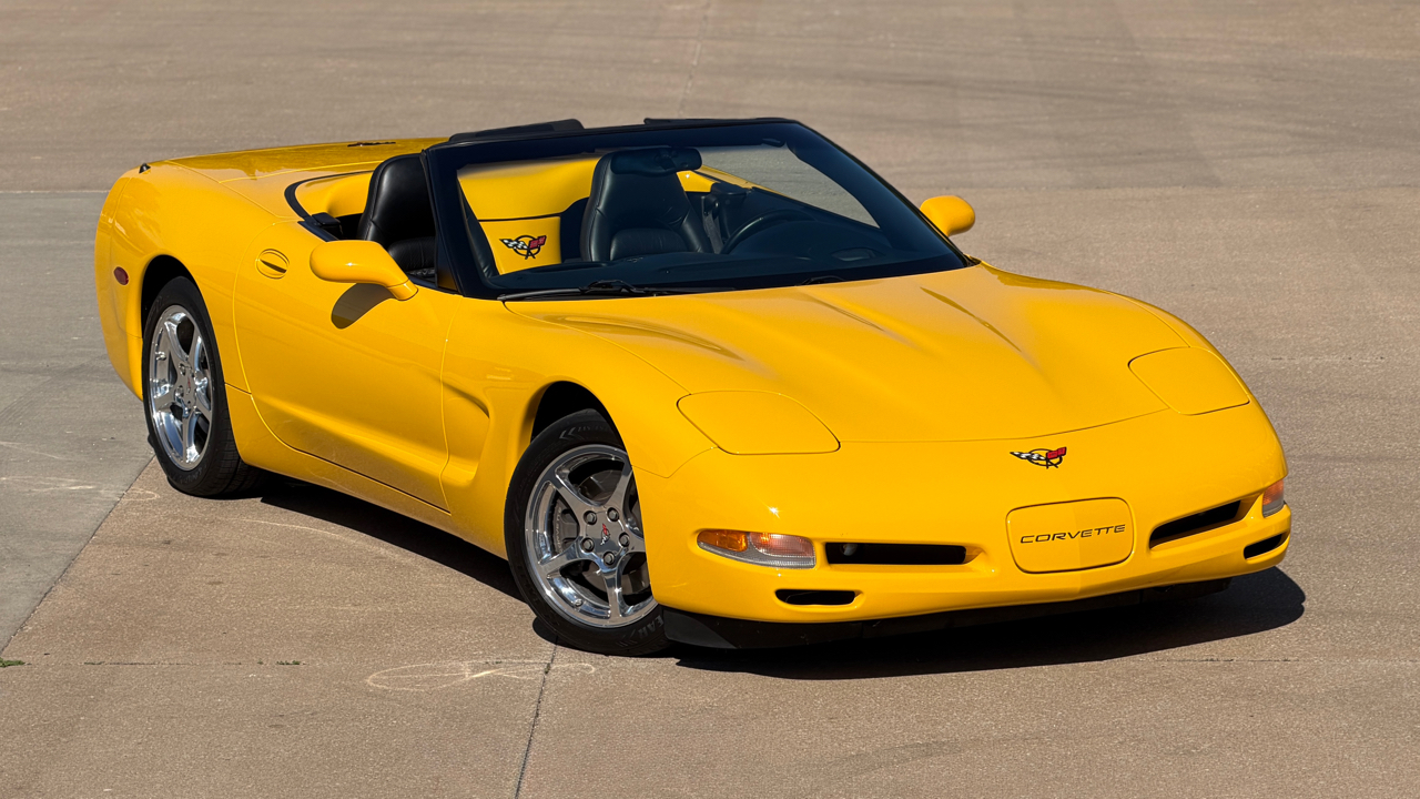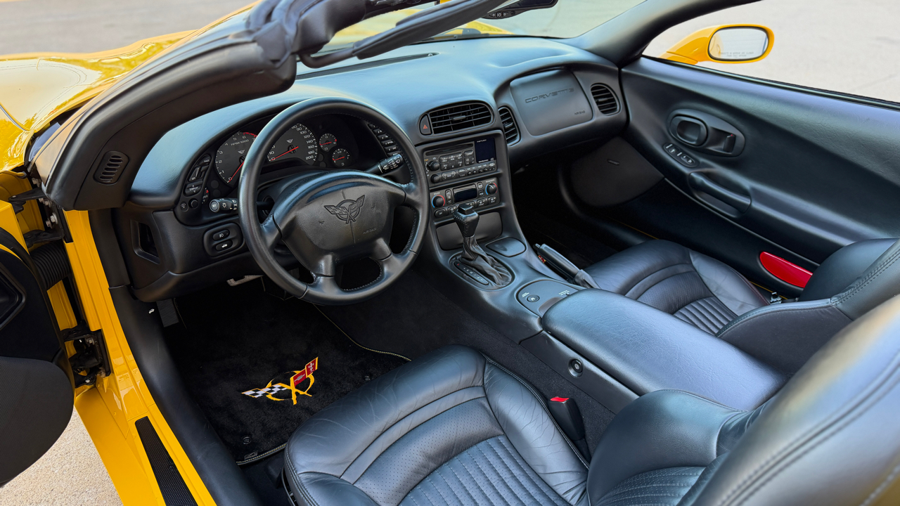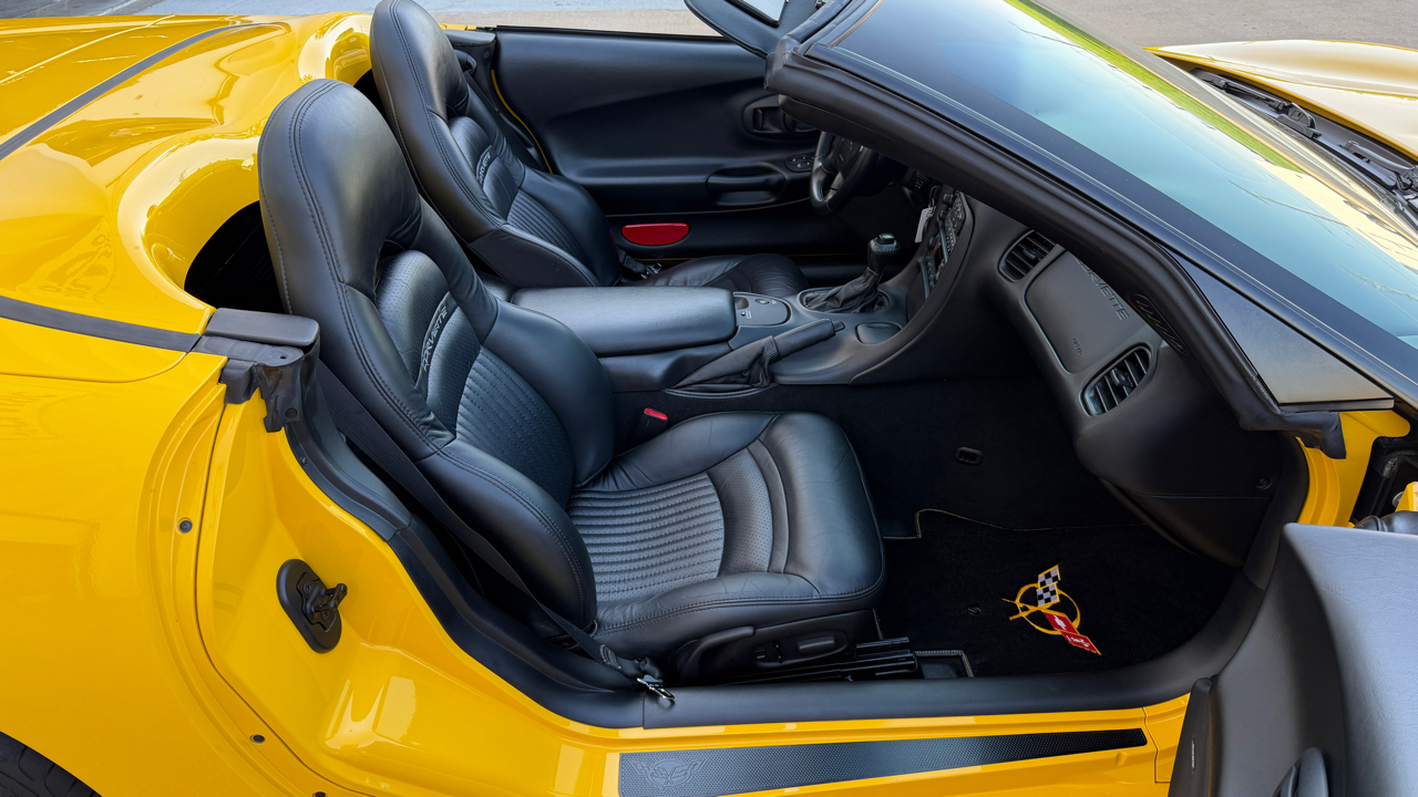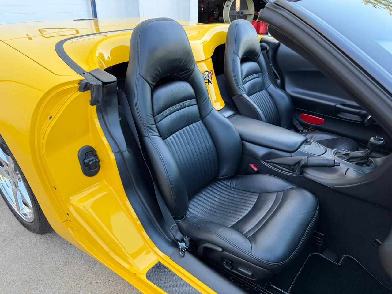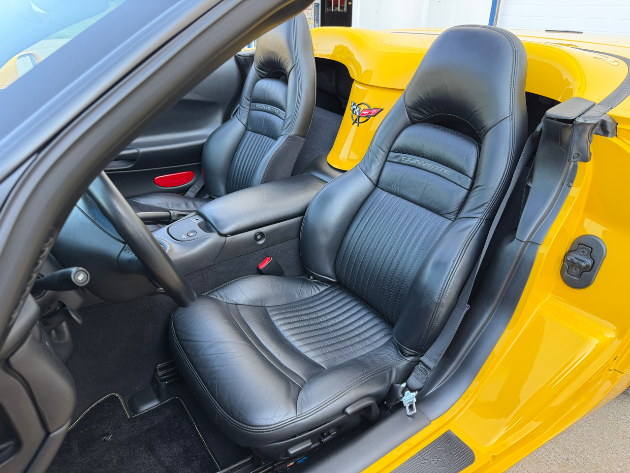 ONLY 23K ORIGINAL MILES and a flawless CarFax! The original Millenium Yellow paint and body are in excellent condition, as well as the Black leather seats and Black convertible top. The original owners manual and sealed Corvette VHS tape are included!