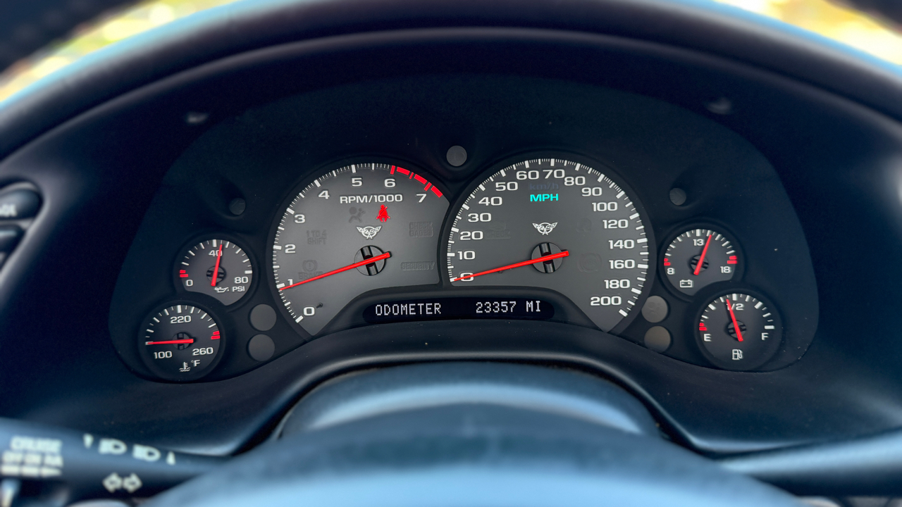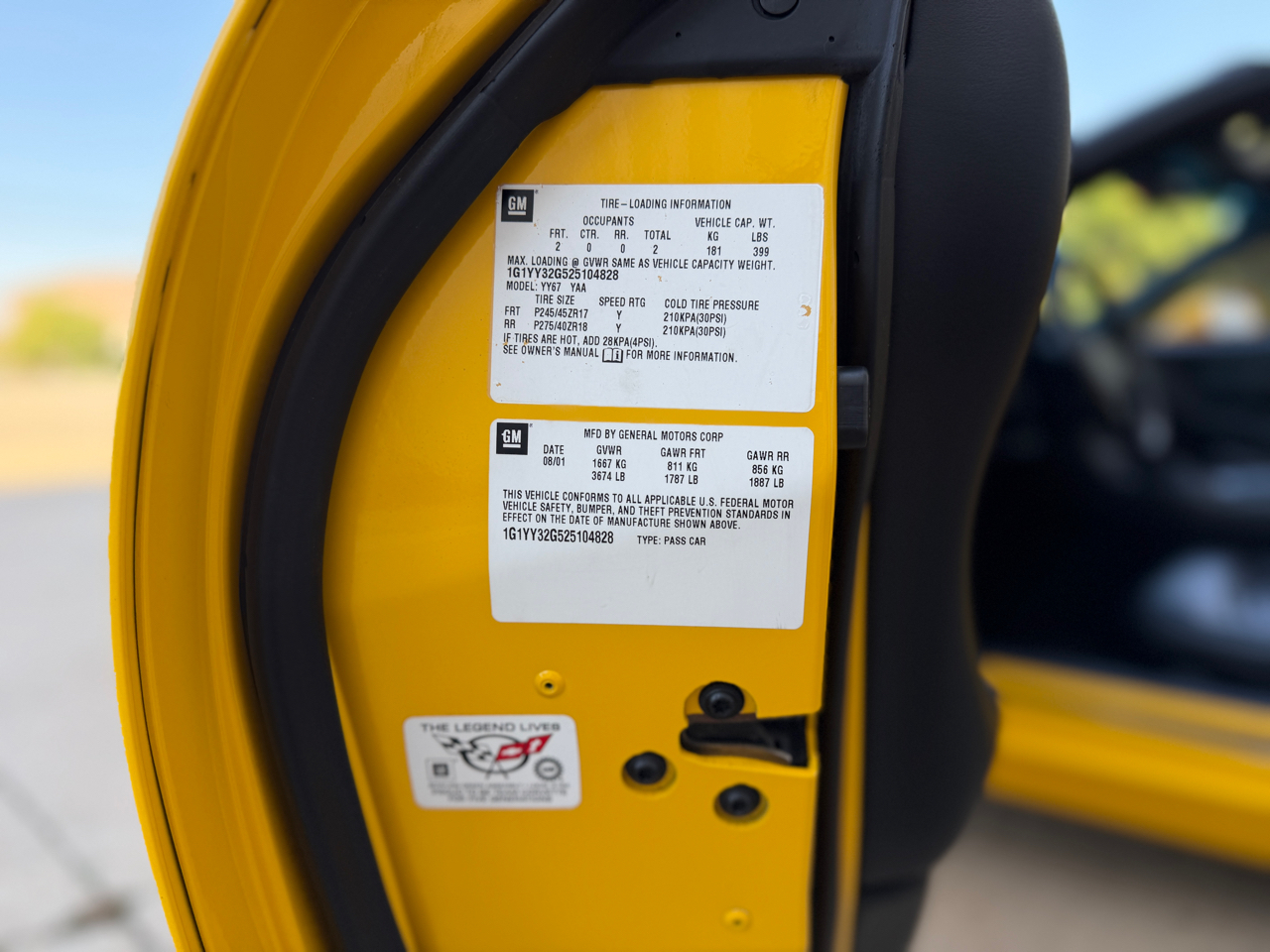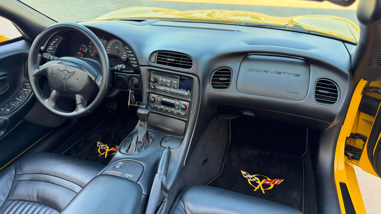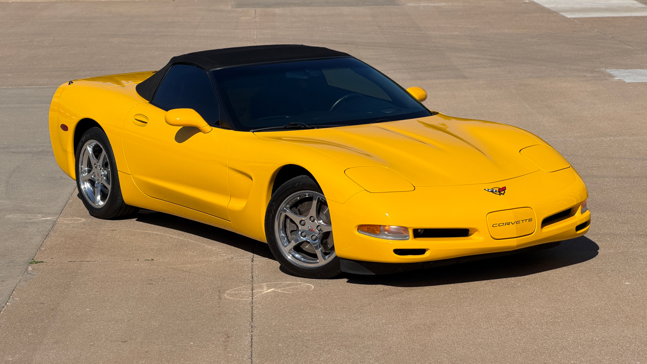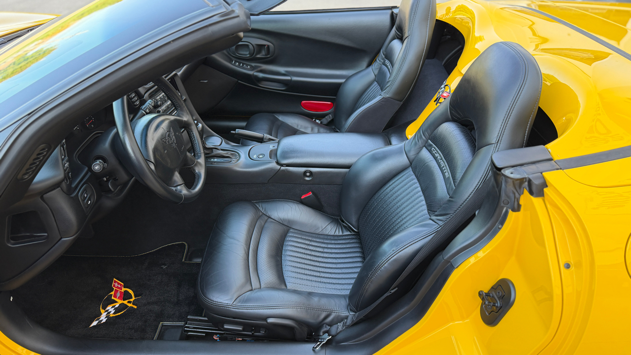 ONLY 23K ORIGINAL MILES and a flawless CarFax! The original Millenium Yellow paint and body are in excellent condition, as well as the Black leather seats and Black convertible top. The original owners manual and sealed Corvette VHS tape are included!