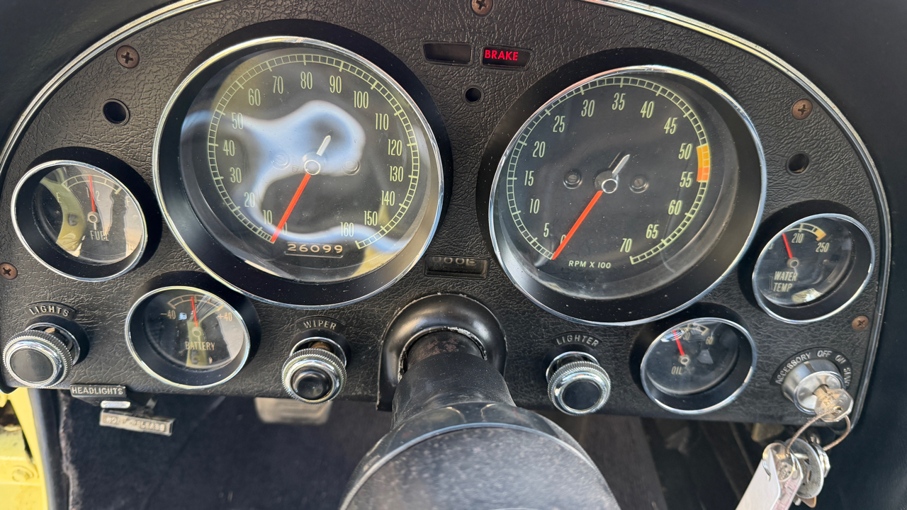 Powered by a 327ci V8 mated to a 4-speed manual transmission. Gauges and headlights work.